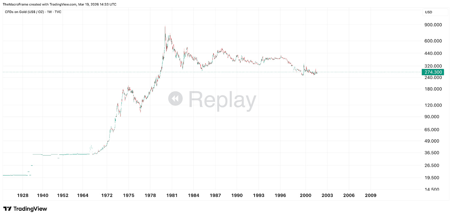 The first thing to look for is where price already is. If it has already moved significantly, the opportunity may have passed. Gold rose roughly 100% in the two years before the 2026 Middle East escalation. You might expect it to catch a bid on geopolitical risk. But gold failing to make new highs in the early stages of the conflict was a signal of exhaustion, not opportunity.