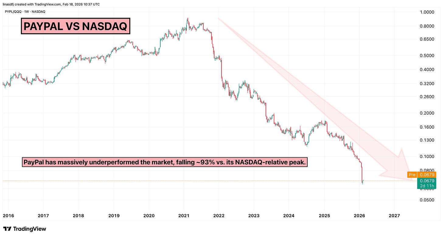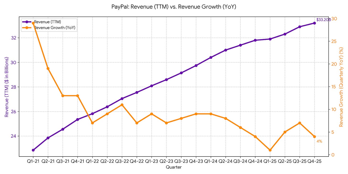 PayPal is no longer priced as a growth company. It’s valued as a business in decline.