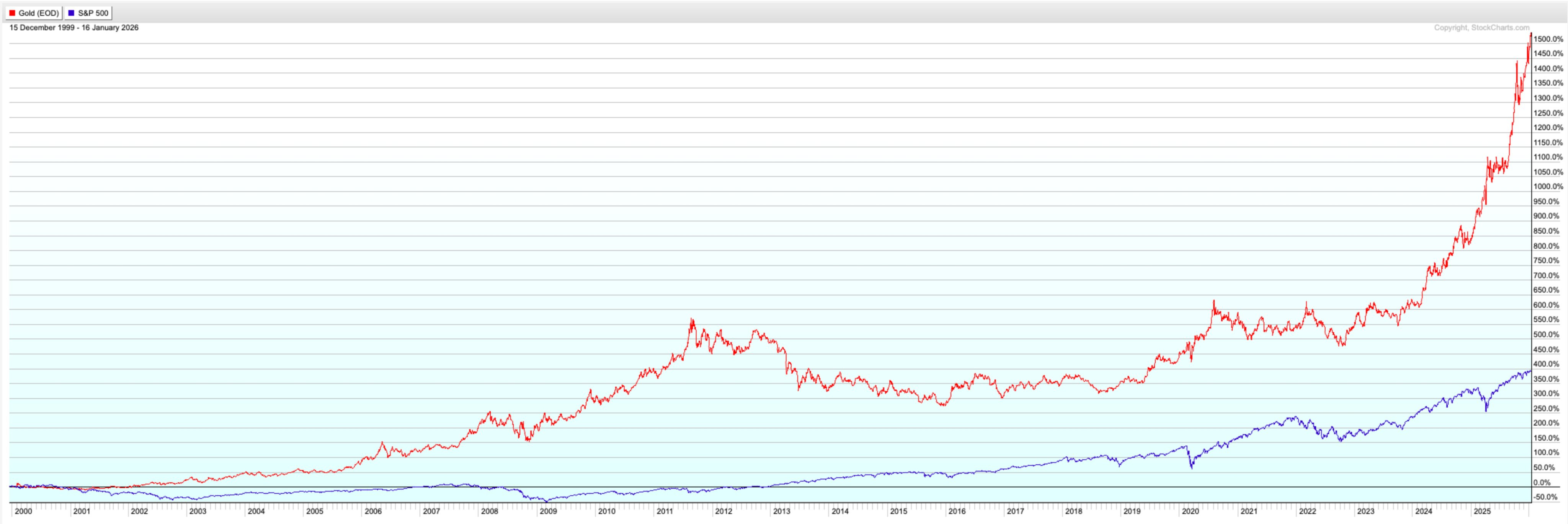 This isn’t a fad either. Since the turn of the millennium, gold has materially outperformed the S&P 500. A “pet rock” has beaten the world’s most celebrated equity index.